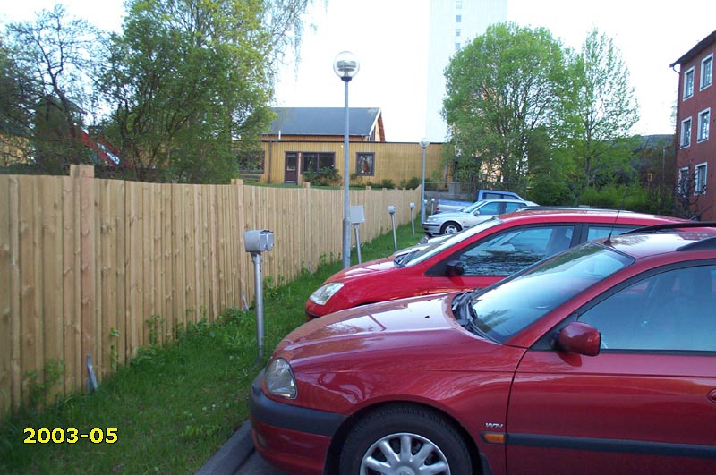 Bilden visar planket vid parkeringen mot dagiset Thor, uppfört år 2002