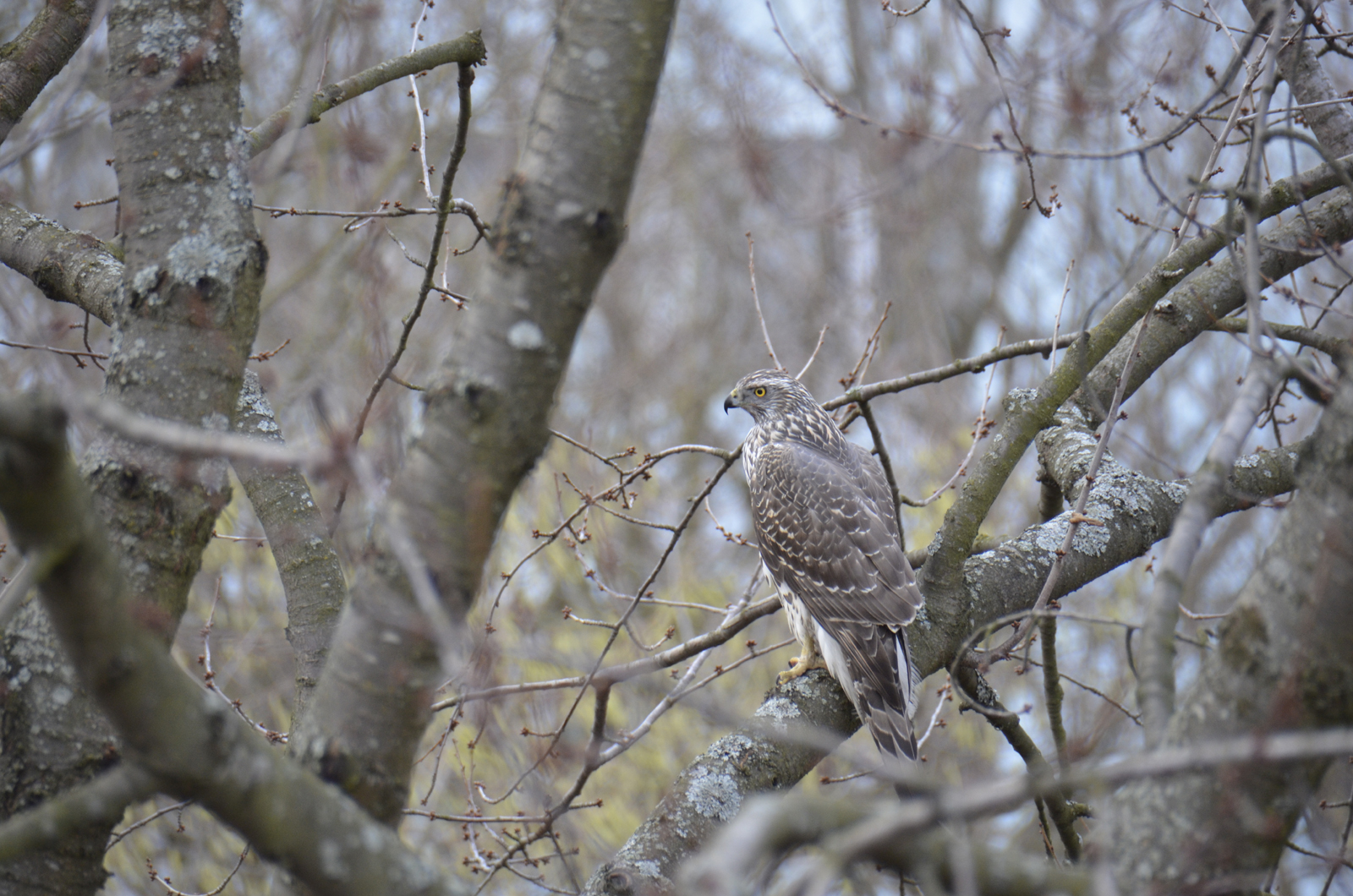 Bild från mars 2015 en duvhök på besök i vår trädgård
